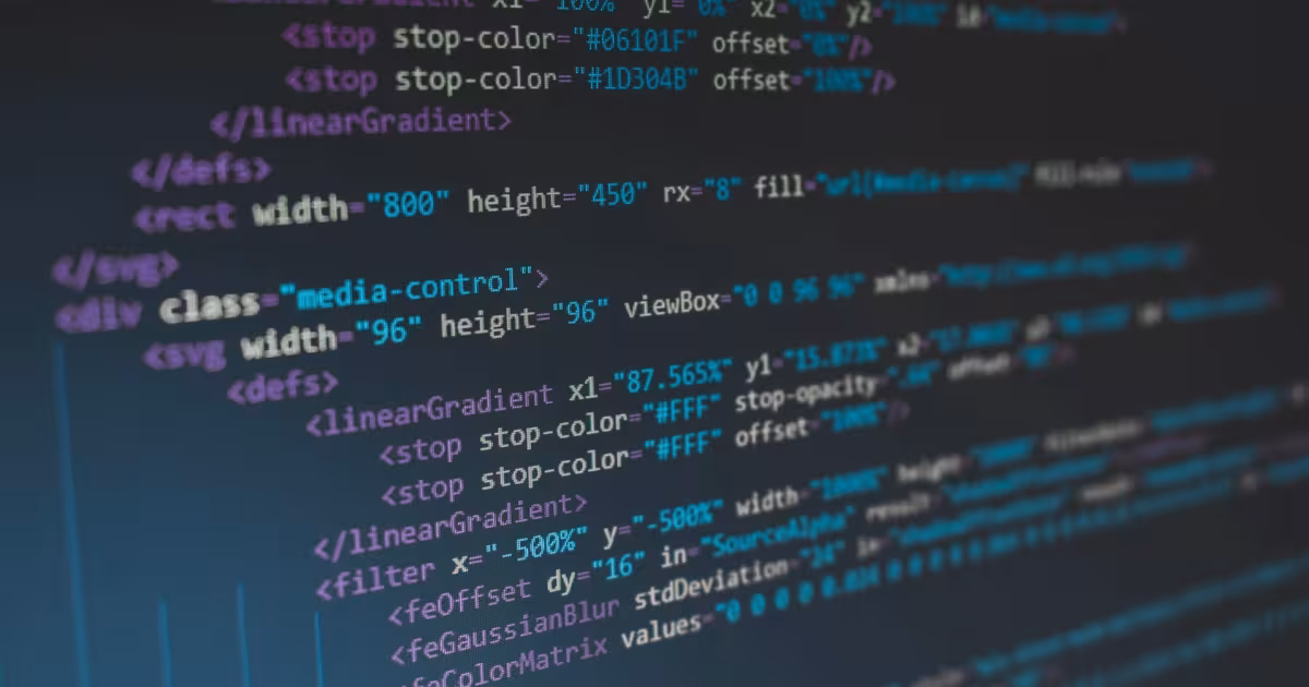 A photo of a computer screen showing HTML code with a variety of color formatting.